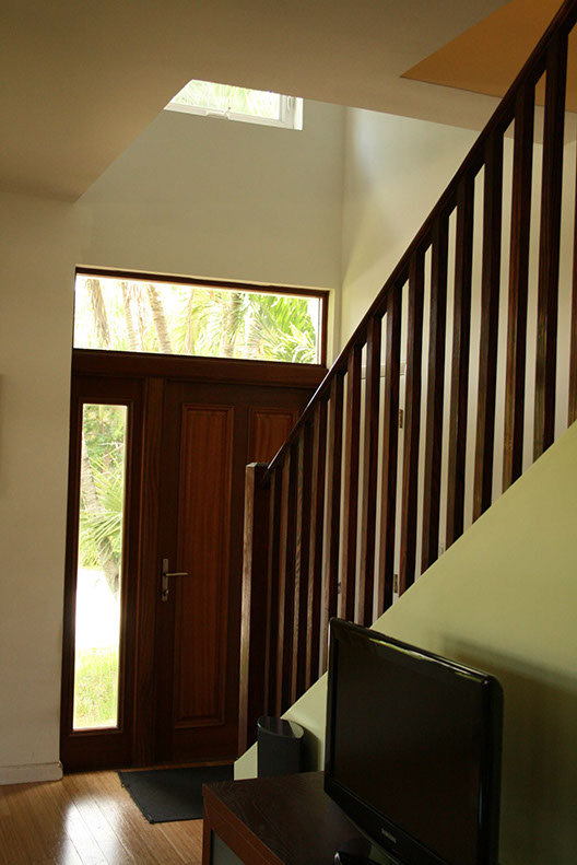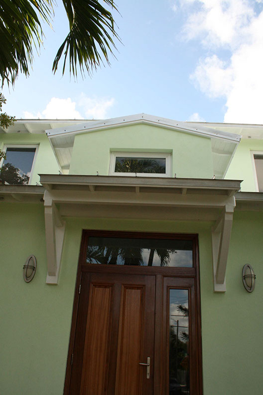 Environmentally conscience, this private residence offers solar panels and rain collection and gray water system. In addition to responding to the intense Florida sun and monsoon rain climate, this design helps contribute to the local Florida Key West sense of place and architectural culture. Additional consideration for sustainability were applied by tuning the size, location and orientation of windows and doors and overhangs to maximize daylighting without over heating the home in the subtropical sun.