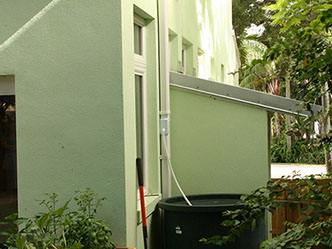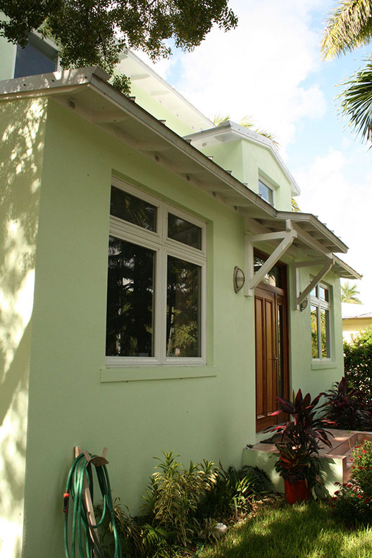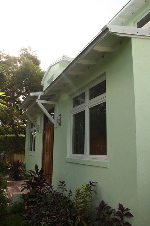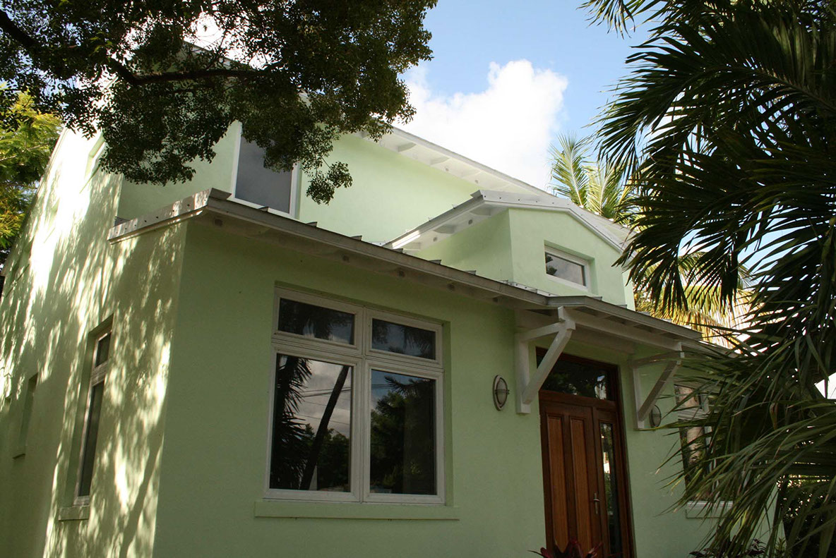 Environmentally conscience, this private residence offers solar panels and rain collection and gray water system. In addition to responding to the intense Florida sun and monsoon rain climate, this design helps contribute to the local Florida Key West sense of place and architectural culture. Additional consideration for sustainability were applied by tuning the size, location and orientation of windows and doors and overhangs to maximize daylighting without over heating the home in the subtropical sun.