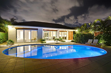 Long vistas down the South Fork of the Middle River drove the design of this home. Large amounts of glass toward the north guide your gaze from inside to pool terrace and beyond. On the south tall areas of glass line the entry and flood light to the center of the dwelling. A moderate palette of modern materials was applied including the selective use of tropical ipe wood to clad columns, detail windows and doors and an outdoor shower.