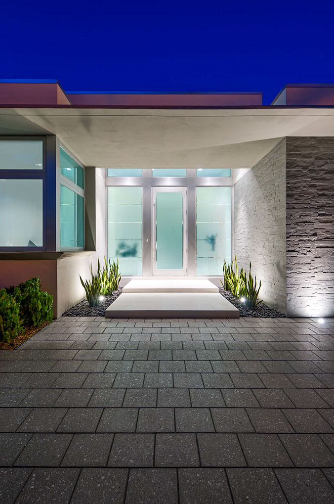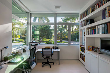 Impenitently modern, this home was envisioned to display distinguished modern art. Clerestory windows lining the center of the home spill indirect natural light into the center while a 28 foot moving wall of glass open to the layered view of loggia, pool terrace, dock and waterway beyond. Understated and unapparent consideration for sustainability were applied by tuning the size, location and orientation of windows and doors and overhangs to maximize daylighting without over heating the home in the subtropical sun.